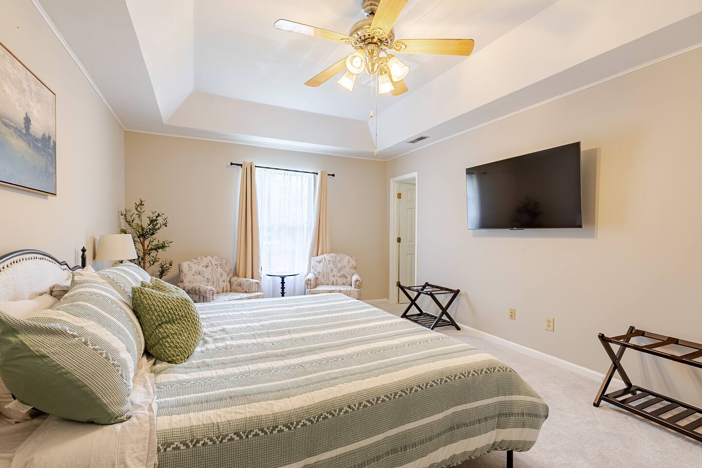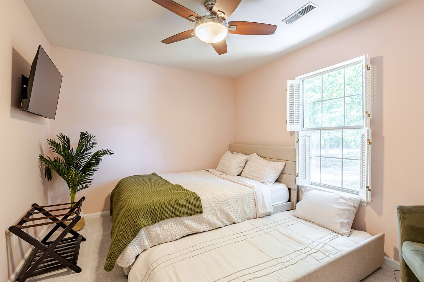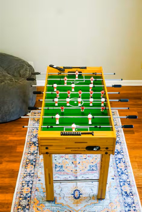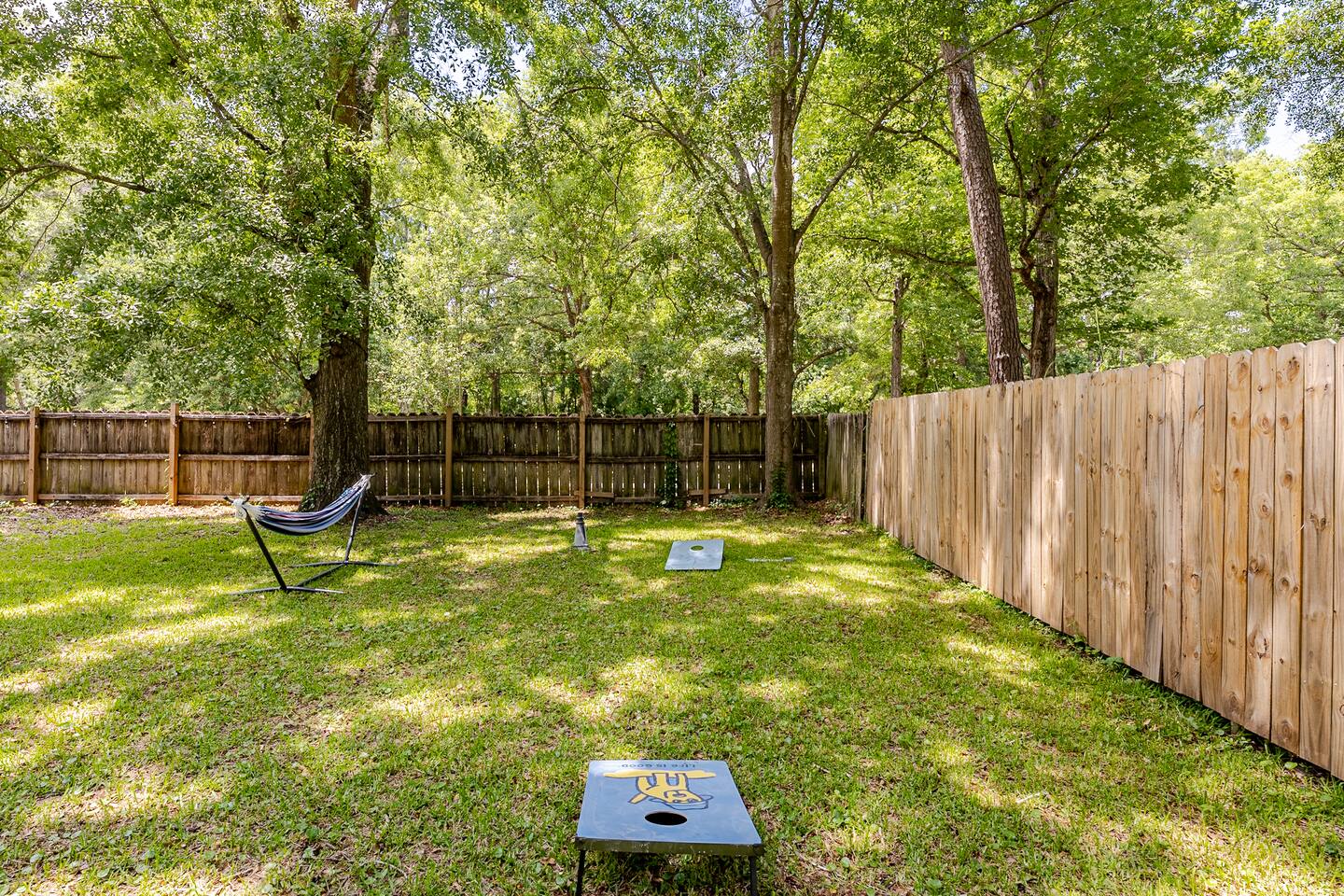 As soon as you step foot in this beautiful two-floor home, youโre greeted by the gorgeous yet highly comfortable living area, decorated in an elegant manner that complements the picturesque and tranquil location. The fully equipped kitchen blends with the dining area, offering a space to cook and enjoy tasty delicacies with your loved ones before unwinding in the relaxing living room, setting the scene for unforgettable evenings. Natural sunlight bursts through many windows, making the home shine bright during the day, touching the hardwood floors and carefully chosen furniture, and enhancing the soothing setting. Rest in the three comfortable bedrooms, which boast 5* comforts that allow you to recharge after an exciting day of sightseeing and outdoor activities. Youโll also discover office space, which is ideal for business travelers. But wait! The best is yet to come! Step out into the fenced backyard to catch a breath of fresh air, soak up the warm sun, and have hours of fun on the spacious lawn while the designated BBQ master works their magic on the grill. When you've had enough of the great outdoors, you can retreat to the game room with the entertaining board, arcade games, and the foosball table. There's so much to do in this inviting house. We look forward to you experiencing its complete comfort and coziness. โ LIVING ROOM โ You will feel right at home! Take a moment to unwind, sink into the comfy sofa, watch your favorite show, or plan your upcoming Charleston adventures. โ Comfortable L-Shaped Sofa with Pillows โ Smart TV โ Fireplace โ Chic Sofa Chairs โ Stylish Coffee Tables โ Access to the Patio โ KITCHEN & DINING โ This fully equipped kitchen boasts modern appliances, making it easy to whip up anything from delicious breakfasts to gourmet dinners. With ample granite countertops, youโll have plenty of room to showcase your culinary skills. โ Microwave โ Stove โ Oven โ Toaster โ Blender โ Air Fryer โ Coffee Maker โ Hot Water Kettle โ Double-Door Refrigerator/Freezer โ Dishwasher โ Sink - Hot & Cold Water โ Plates โ Glasses โ Silverware โ Pots and Pans Unwind and catch up with your loved ones in the lavish backyard while the food is prepared. When done, gather at the dining table and savor a delicious meal in an inviting atmosphere. โ Dining Table with Seating for 6 โ SLEEPING ARRANGEMENTS โ 3 BEDROOMS โ After an exciting day of exploring the thrilling attractions and landmarks, you will look to rest for an equally entertaining tomorrow. Once you are ready to relax, please make your way to these comfortable bedrooms. โ Master Bedroom: King-Size Bed, Ensuite Bathroom โ Bedroom 2: Queen-Size Bed + Twin Trundle โ Bedroom 3: Queen-Size Bed + Twin Trundle All bedrooms share a similar set of amenities. โ Premium Mattresses, Linens, Sheets, and Pillows โ Smart TVs โ Closets with Hangers and Shelves โ Dressers with Spacious Drawers โ Night Stands with Reading Lamps โ Cozy Sitting Areas โ BATHROOMS โ In addition to the master bedrooms ensuite bathroom, the accommodating home features another full bathroom that caters to the remaining bedrooms and a convenient half bath accessible from the living area. All are stocked with pampering towels and necessities to ensure a carefree stay.ย โ Bathtub with a Shower โ Vanity (Double in the Master Bath) โ Mirror โ Toilet โ Towels โ Hair Dryer โ Essential Toiletries โ GAME ROOM โ Come to the game room to discover numerous relaxing and entertaining amenities. Be careful, though. Youโll quickly lose track of time in this fun space! โ Foosball Table โ Board Games โ OFFICE โ Its not all fun and games in our spacious home! We've furnished a designated workspace where you can attend to business in complete privacy. โ Workspace (Desk, Chair, Lamp) โ Printer/Scanner โ BACKYARD โ ย A stunning getaway would not be complete without a private space where you can take in the serenity and beauty of the outdoors. Step into a fully fenced backyard ideal for relaxation and various activities. โ Dining Table with Seating for 6 + Parasol โ Two BBQ Grills โ Fire Pit with Surrounding Seating โ Hammock Find your happiness in this attractive retreat. It offers a place to escape the hustle and bustle of everyday life, cuddle on the sofa, play games, unwind in the backyard, and explore exciting Charleston attractions. Donโt hesitate to contact us with any questions you may have. Happy Travels!