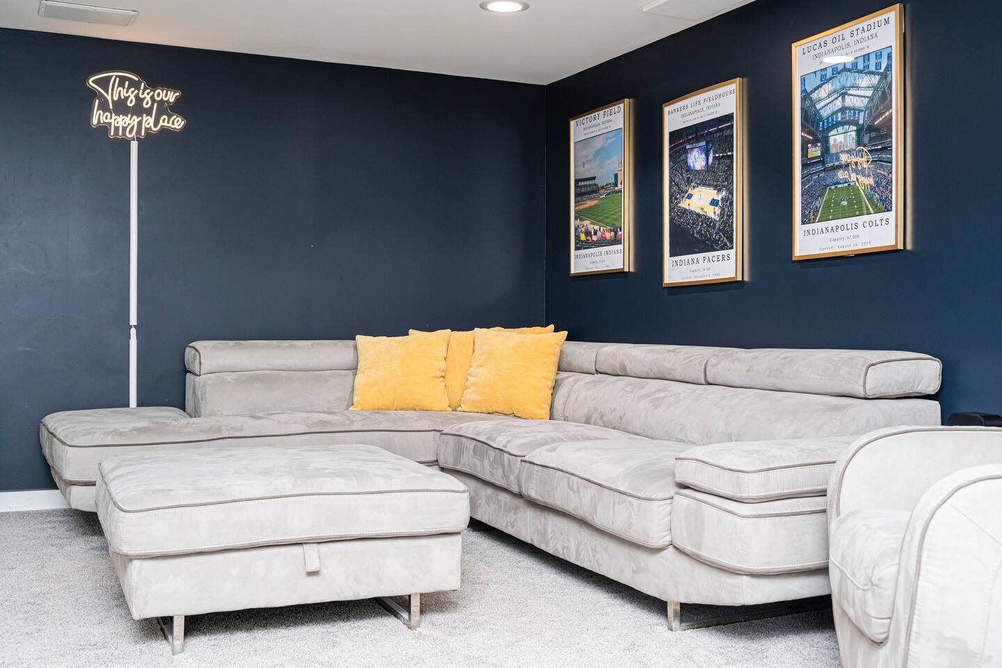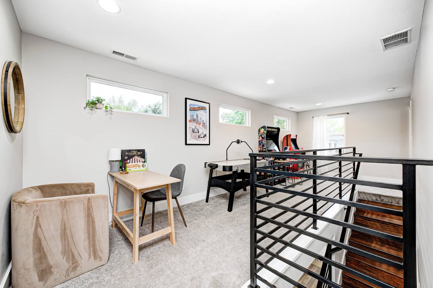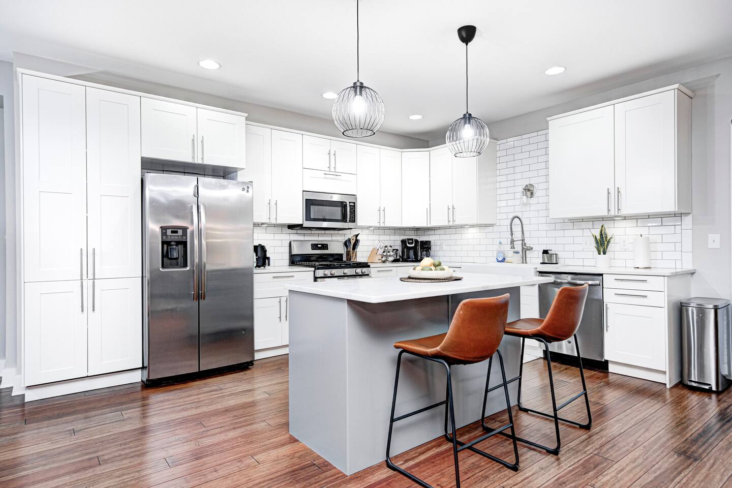 ✨ Stylish & Comfortable Living Step into an open-concept space filled with natural light, gleaming hardwood floors, exposed brick, and thoughtful finishes throughout. Unwind in the cozy living room with a modern electric fireplace or enjoy movie nights in the finished basement media room with surround sound. ✔ Comfortable Bedrooms for the Whole Family ✔ Fast Wi-Fi for Work or Streaming ✔ Laundry Closet w/ Full-Size Washer + Dryer ✔ Jack-and-Jill Bathroom shared with the two upstairs bedrooms ✔ Two spacious bedrooms each feature two full-sized beds, comfortably sleeping 4 guests per room—ideal for families or friends ✔ Two Suites — One with Balcony + Spa-Inspired Bath 🍳 Chef’s Kitchen Highlights: ✔ White shaker cabinets & farmhouse sink ✔ Quartz countertops & stainless steel appliances ✔ Massive center island for prepping, gathering, and dining 🌿 Outdoor Spaces You’ll Love: ✔ Covered front porch for morning coffee ✔ Private back deck — perfect for evening drinks or a quiet moment outdoors 📍 Prime Fountain Square Location — Walk or Drive to It All! ✹ Fountain Square Cultural District – 3-minute walk to local shops, art, and vintage arcades ✹ Bluebeard, Milktooth & La Margarita – Some of Indy’s best eats, all nearby ✹ Lucas Oil Stadium – 7-minute drive to catch the Colts or major events ✹ Gainbridge Fieldhouse – 8 mins to Pacers games & concerts ✹ Mass Ave & Bottleworks District – Under 10 mins for local art, nightlife & shopping ✹ Garfield Park & Sunken Gardens – Just 5 mins for a dose of outdoor space Whether you're exploring the cultural trail, catching a show, or just enjoying the quiet neighborhood vibes, this home is your ideal spot for a comfortable stay in a vibrant city. ☆☆ Book your unforgettable experience today — Indy is waiting! ✹