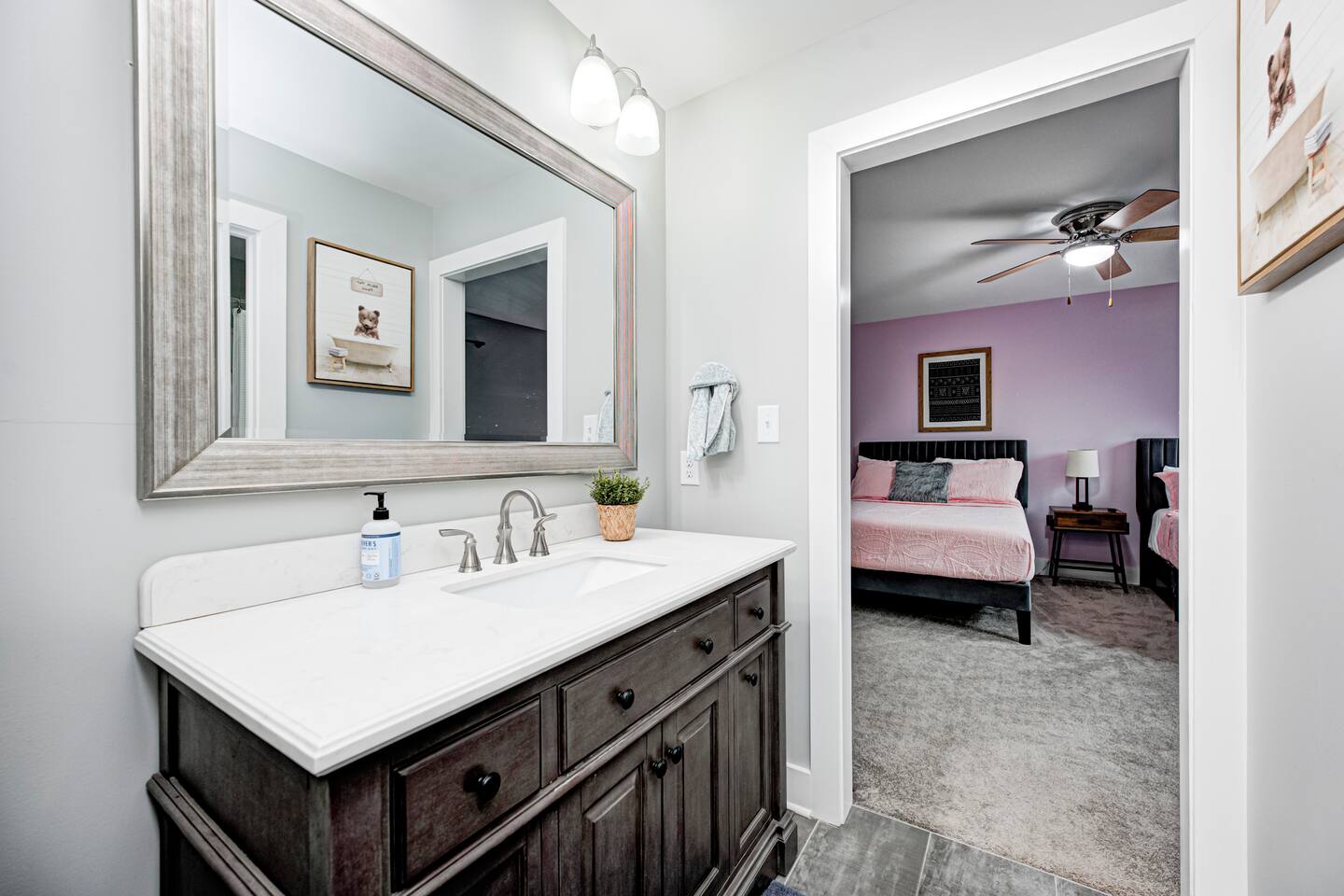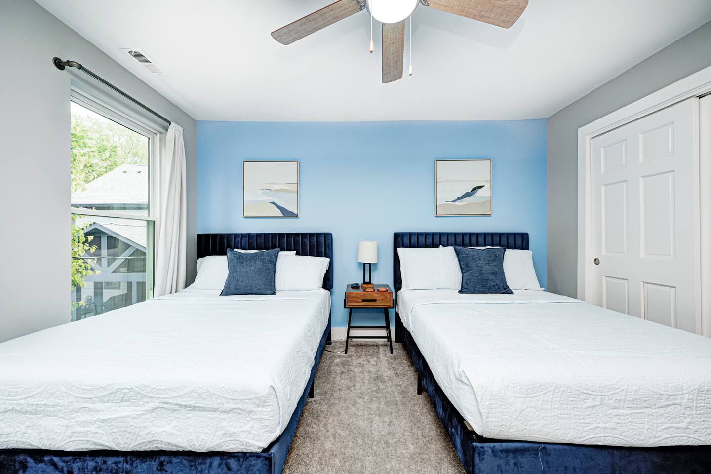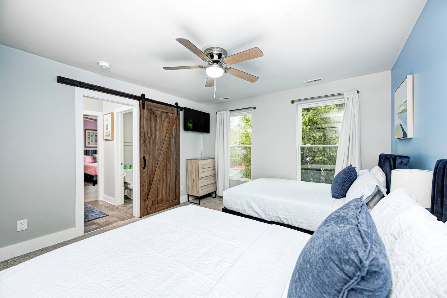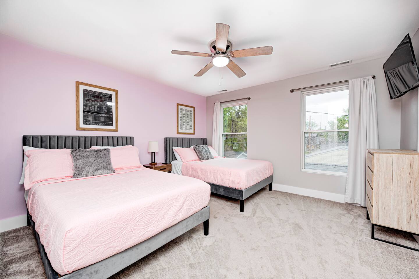✨ Stylish & Comfortable Living Step into an open-concept space filled with natural light, gleaming hardwood floors, exposed brick, and thoughtful finishes throughout. Unwind in the cozy living room with a modern electric fireplace or enjoy movie nights in the finished basement media room with surround sound. ✔ Comfortable Bedrooms for the Whole Family ✔ Fast Wi-Fi for Work or Streaming ✔ Laundry Closet w/ Full-Size Washer + Dryer ✔ Jack-and-Jill Bathroom shared with the two upstairs bedrooms ✔ Two spacious bedrooms each feature two full-sized beds, comfortably sleeping 4 guests per room—ideal for families or friends ✔ Two Suites — One with Balcony + Spa-Inspired Bath 🍳 Chef’s Kitchen Highlights: ✔ White shaker cabinets & farmhouse sink ✔ Quartz countertops & stainless steel appliances ✔ Massive center island for prepping, gathering, and dining 🌿 Outdoor Spaces You’ll Love: ✔ Covered front porch for morning coffee ✔ Private back deck — perfect for evening drinks or a quiet moment outdoors 📍 Prime Fountain Square Location — Walk or Drive to It All! ✹ Fountain Square Cultural District – 3-minute walk to local shops, art, and vintage arcades ✹ Bluebeard, Milktooth & La Margarita – Some of Indy’s best eats, all nearby ✹ Lucas Oil Stadium – 7-minute drive to catch the Colts or major events ✹ Gainbridge Fieldhouse – 8 mins to Pacers games & concerts ✹ Mass Ave & Bottleworks District – Under 10 mins for local art, nightlife & shopping ✹ Garfield Park & Sunken Gardens – Just 5 mins for a dose of outdoor space Whether you're exploring the cultural trail, catching a show, or just enjoying the quiet neighborhood vibes, this home is your ideal spot for a comfortable stay in a vibrant city. ☆☆ Book your unforgettable experience today — Indy is waiting! ✹