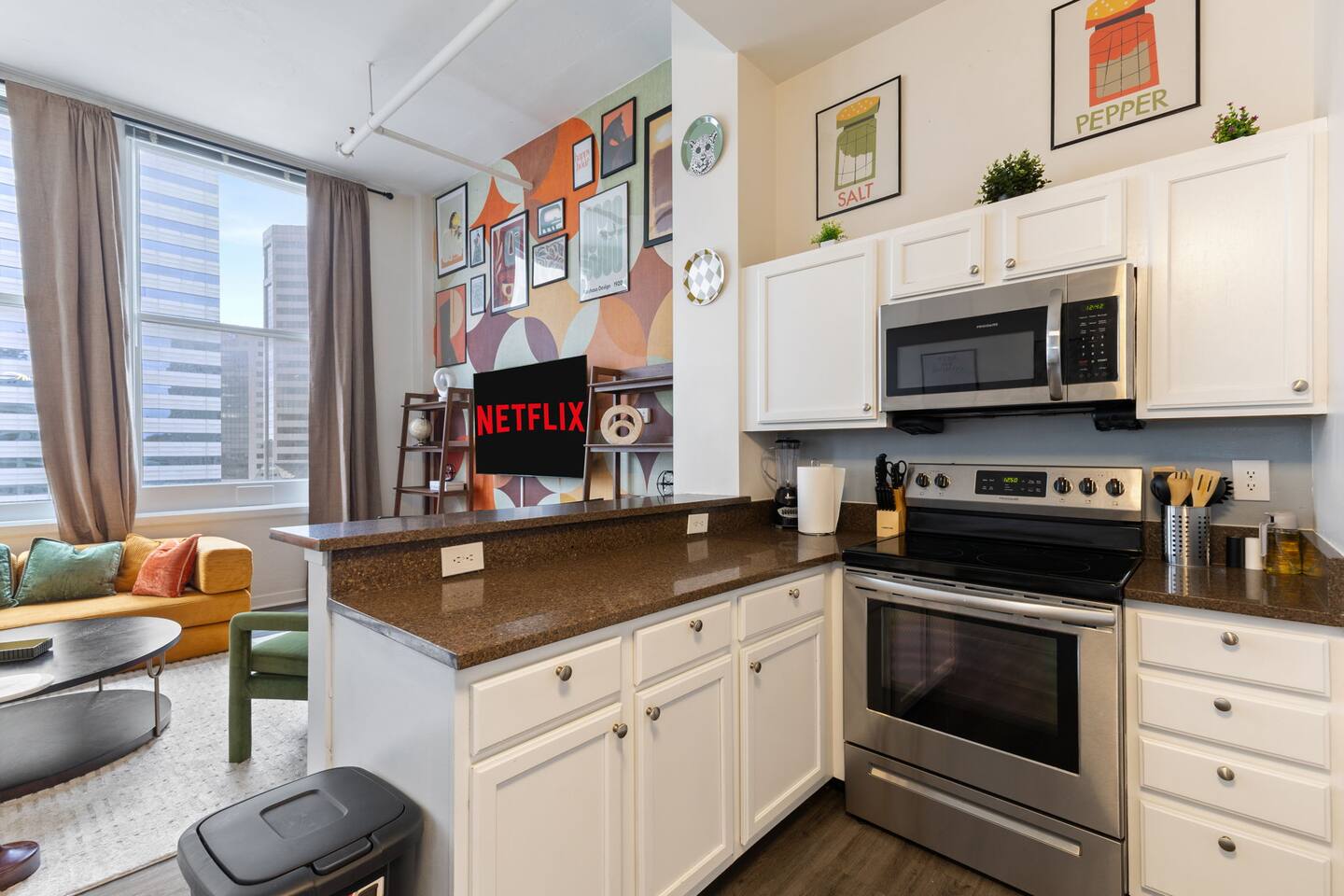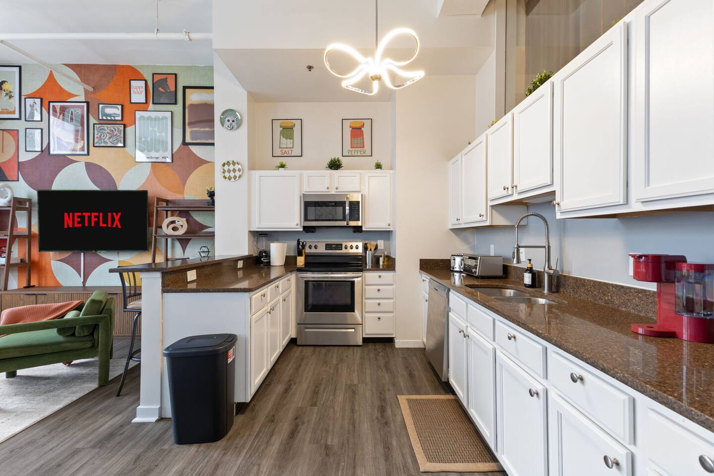 The apartment is exclusively yours, without interruption during your stay, so relax, unwind, and make yourself at home. Other than the already mentioned amenities, our home also comes with the following:✹ GENERAL: Guests can enjoy exclusive, uninterrupted access to the entire loft, so relax, unwind, and make yourself at home. ✹ COMPLIMENTARY ESSENTIALS: We provide guests with complimentary bathroom toiletries and coffee. ✹ PARKING: Paid parking is conveniently located just across the street from the apartment building.✹ WORK FROM HOME: Free, high-speed Wi-Fi is available throughout the home, plus a designated workspace in the living room.✹ FAMILY: Traveling with little ones? We’ve got you covered with a few supplies including a Pack ’n Play/travel crib and a high chair.✹ NO PETS: We love those little (and not so little) furry bundles of joy. Sadly, our home is not suitable for accommodating them.✹ COMMUNITY PERKS: Take advantage of shared building amenities, including a fitness center, theater and laundry area (fees may apply).Don’t hesitate to reach out with any questions - we look forward to hosting you