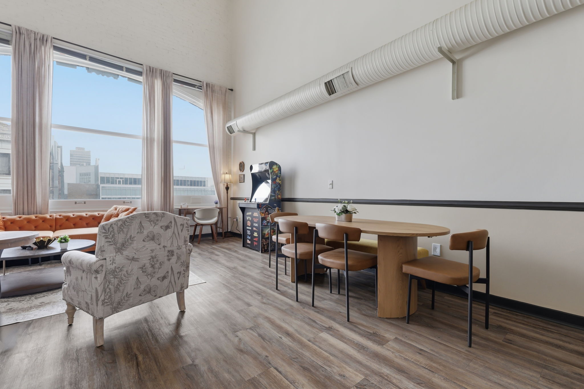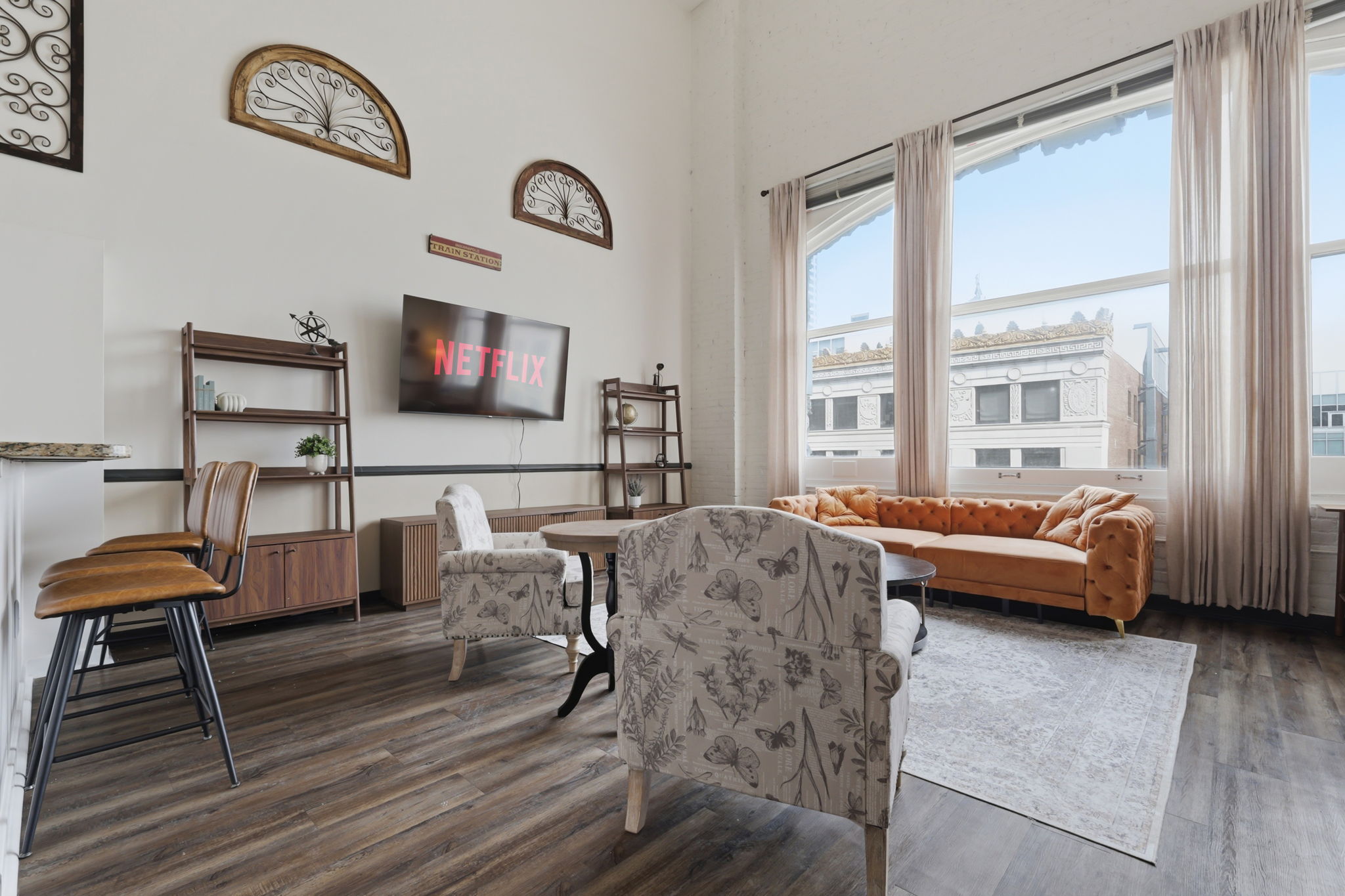 ☆☆ HIGHLIGHTS – 3BR ☆☆ ✹ 3 bedrooms total (1 King, 2 Queens, 2 twin trundles + extra sleeping options) ✹ 2 full bathrooms stocked with essentials ✹ Fully equipped kitchen with modern appliances ✹ Drip coffee maker + Keurig with complimentary coffee ✹ Spacious living area with high ceilings, large Smart TV, sofa bed + air mattress ✹ Dining table seating for 8 ✹ Fast Wi-Fi + dedicated workspaces ✹ Central heating & air ✹ In-unit washer & dryer ✹ Family-friendly: Pack ’n Play + high chair available ✹ Ring camera at front entrance ✹ Free access to building gym ✹ Garage parking across the street ($20/night/car, 6'6" clearance) ✹ Prime downtown location near attractions & transit ✹ Walk to restaurants; short drive to grocery stores ★★ BEDROOMS ★★ Ideal for families, friend groups, or colleagues traveling together, each bedroom features warm Midwest-inspired design, soft linens, comfortable beds, and its own Smart TV. ✹ King suite upstairs near a full bathroom ✹ Two Queen bedrooms with twin trundles ✔ Additional sleeping: sofa bed + air mattress ★★ BATHROOMS ★★ Two full bathrooms make getting ready easy for groups. Each includes a tub/shower combo with modern finishes. ✹ Granite countertops + updated fixtures ✹ Fresh towels, hair dryer, shampoo, conditioner & body wash ✹ Washer & dryer in-unit ★★ KITCHEN & DINING ★★ Perfect for cooking at home or enjoying takeout from Indy’s best spots. ✔ Stainless steel appliances + dishwasher ✔ Drip coffee maker + Keurig with complimentary coffee ✔ Cookware, dinnerware & essentials ✔ Dining seating for 8 ✔ High chair available ★★ LIVING ROOM ★★ Bright and inviting with tall windows and mid-century touches, this is the perfect space to relax or gather. ✔ Large Smart TV + curated décor ✔ Comfortable seating + sofa bed ✔ Dedicated desk for remote work ✔ High-speed Wi-Fi throughout ★★ COMMUNITY AMENITIES ★★ Guests enjoy access to shared building amenities: ✹ Fitness center ✹ Recreation lounge (shuffleboard, ping-pong, bocce) ✹ Additional shared laundry ✹ Secure building entry ★★ LOCATION & ATTRACTIONS ★★ Stay in the heart of Downtown Indy—close to Lucas Oil Stadium, the Convention Center, dining, and cultural attractions. Just 15 minutes from the airport. Nearby highlights include: 🏈 Lucas Oil Stadium – 20-min walk 🎭 Gainbridge Fieldhouse – 20-min walk 🦓 Indianapolis Zoo – 5-min drive 🌳 White River State Park – 7-min drive 🍽️ Mass Ave & Fountain Square – Minutes away 🌟 Book this spacious Downtown Indy stay—stylish, central, and perfect for groups up to 10! 🌟