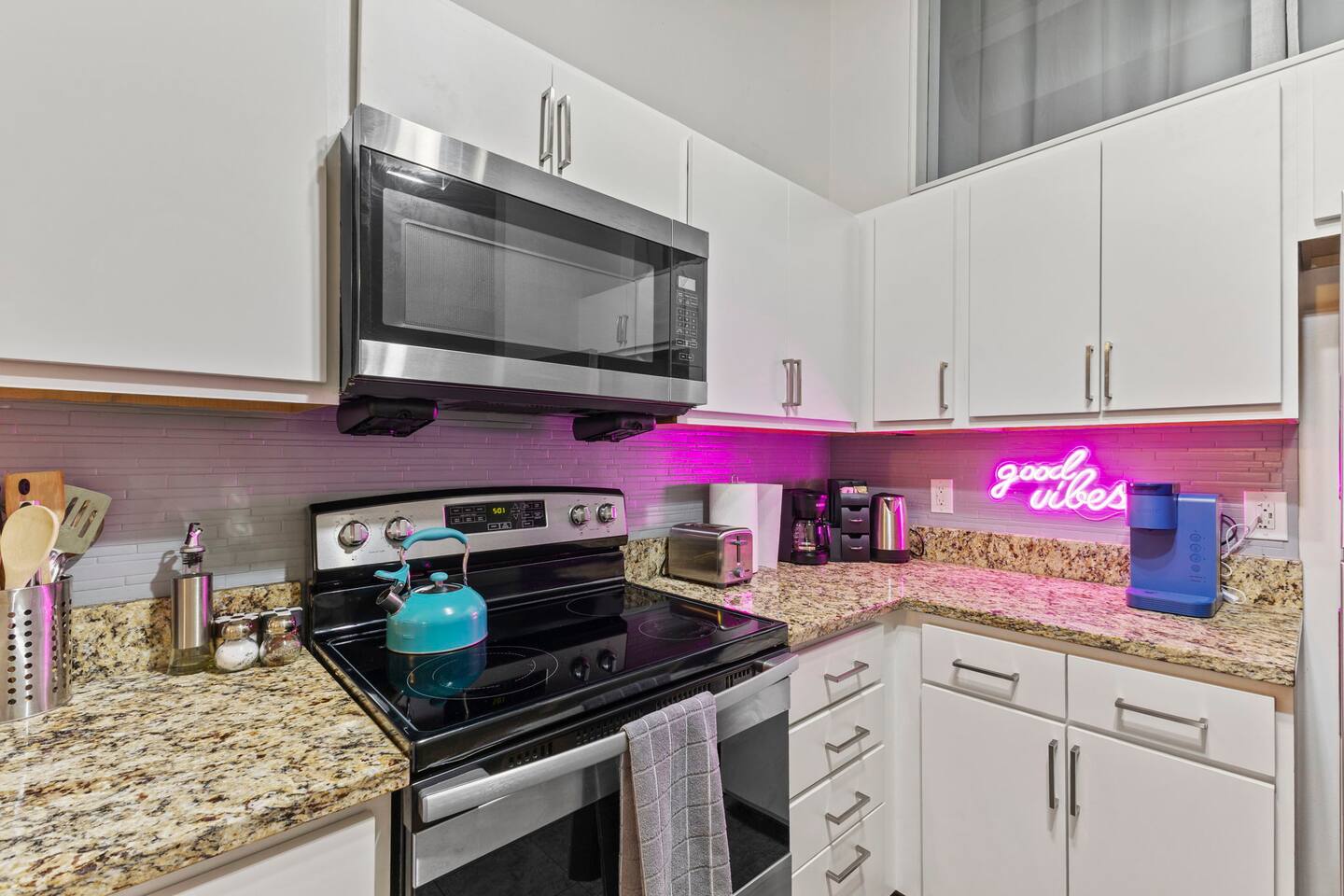✹ Easy self-check-in is available via the keypad on the front door. ✹ CLEANING & SANITIZATION: The health, safety, and well-being of our guests is our top priority. For this reason, we employ a thorough cleaning process between each booking. ✹ NO SMOKING: Please refrain from smoking inside the home. Any smoking evidence will result in a fee for odor removal and furniture cleaning. ✹ NO PARTIES/EVENTS: We kindly request you treat our home as your own to preserve its pristine condition for future guests and your return visits. ✹ NO WEAPONS OR DRUGS ALLOWED; zero tolerance means police will be called for violating this rule. ✹ NOISE POLICY: Guests must agree to not disturb neighbors at all times during the stay. In addition, guests must agree to observe quiet hours from 9pm-7am each day. The unit is proactively monitored with decibel sensors for compliance with this noise policy. ✹ ✹ ✹ To make sure everything goes smoothly and we comply with legal and HOA rules, we kindly ask that you provide a copy of your official government-issued photo ID, confirm your contact information, and complete our quick verification process. In some cases, a background check may be needed as well. Please note, if the required documents are not submitted and the registration process is not completed, it may result in denied entry, revocation of access codes, cancellation of your stay, and unfortunately, no refund. Important: Rest assured, any information collected will only be used for verification purposes and will not be stored or shared. Additionally, all guests will need to sign a rental agreement that covers the terms of the stay. By confirming your reservation, you agree to the following: ✔️ You agree to follow our rental terms and conditions. ✔️ You understand that a valid government-issued ID will be required before check-in. ✔️ You acknowledge that a background check may be needed if required by the property management or building, as outlined in the rental agreement. Minimum Age Requirements: ✔️ 22 years old for out-of-town guests ✔️ 25 years old for local guests We request your ID for a quick identity verification process, similar to what you would encounter when checking in at a hotel. This helps us create a secure and welcoming environment for all our guests. ✹ Long-term stays (30 days+): Long-term guests will be subject to a background search and credit check. ✹ Need to accommodate a larger group? We host other properties in the area, including within the same apartment building. Please reach out for details.
