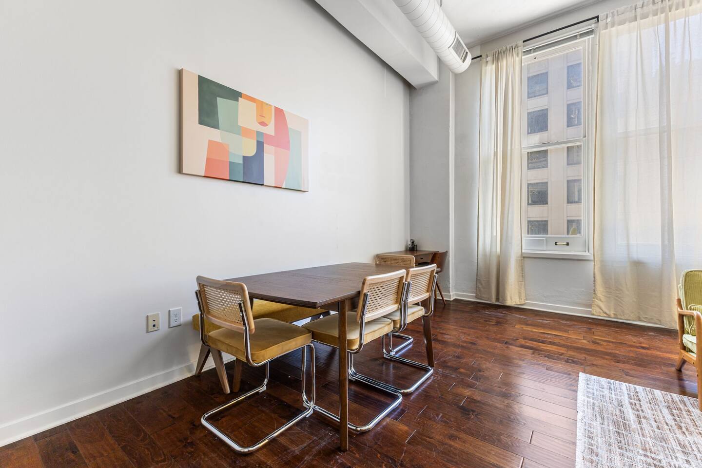 The apartment is exclusively yours, without interruption during your stay, so relax, unwind, and make yourself at home. Other than the already mentioned amenities, our home also comes with the following: ✹ FULL ACCESS: You’ll have the entire loft to yourself—no shared spaces, no interruptions. Settle in, relax, and feel completely at home. ✹ ON US: Enjoy complimentary bathroom essentials and a fresh cup of coffee to start your mornings right. ✹ PARKING: Paid parking is conveniently located just across the street from the apartment building. ✹ REMOTE WORK READY: Stay productive with high-speed Wi-Fi throughout the home and a dedicated workspace in the living area. ✹ FAMILY-FRIENDLY: Traveling with kids? We provide a Pack ’n Play/travel crib and a high chair to make things easier. ✹ NO PETS, PLEASE: While we adore animals, our home isn’t pet-friendly at this time. Thanks for understanding! ✹ COMMUNITY PERKS: Take advantage of shared building amenities, including a fitness center, theater and laundry area (fees may apply). Have questions or special requests? We’re just a message away and always happy to help. We can’t wait to host you!
